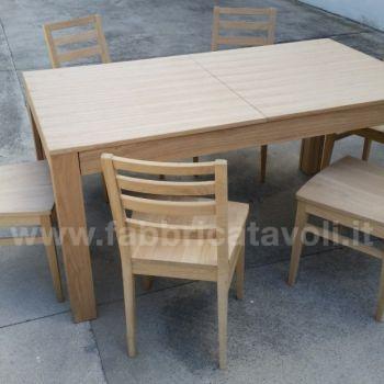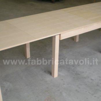 Tavolo allungabile al centro in legno di faggio o frassino 4/8 gambe con 5/6 allunghe centrale da 38, guide per allunghe in metallo.