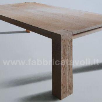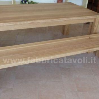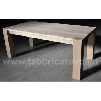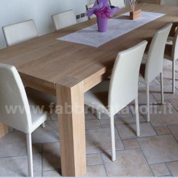 Tavolo con piano fisso realizzato completamente in legno massello di rovere e con gambe a vista sul piano.