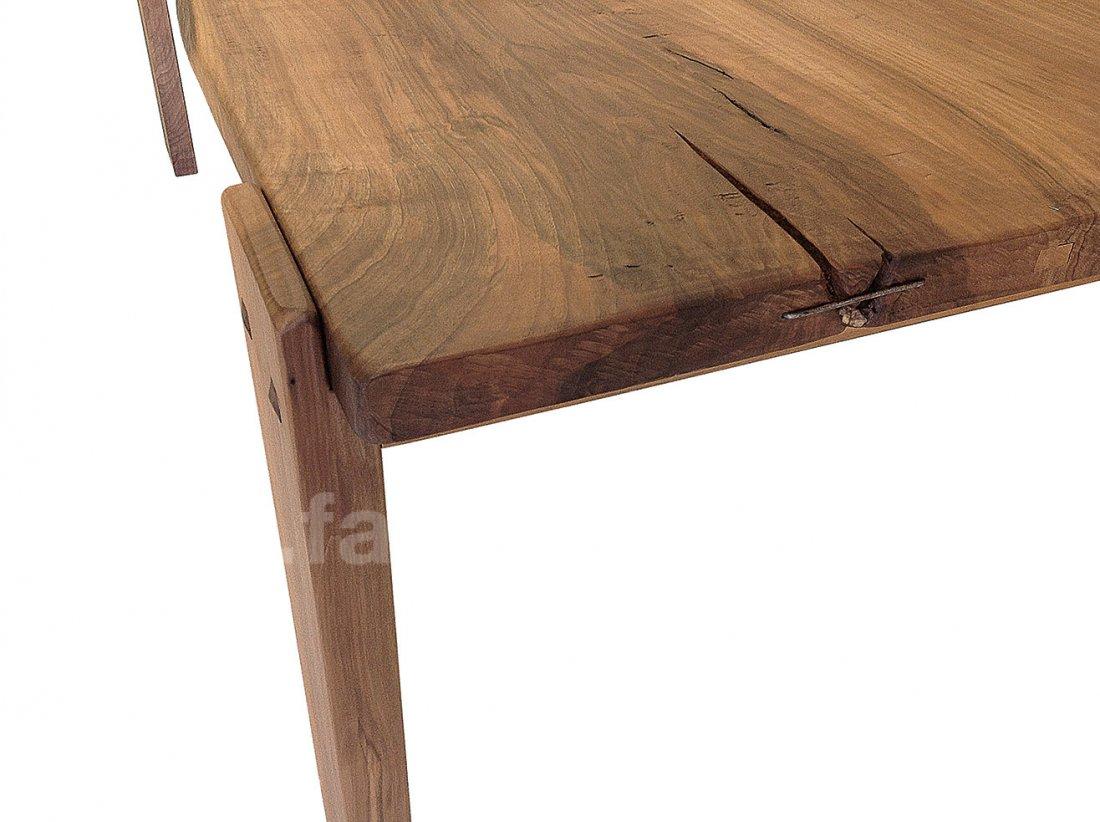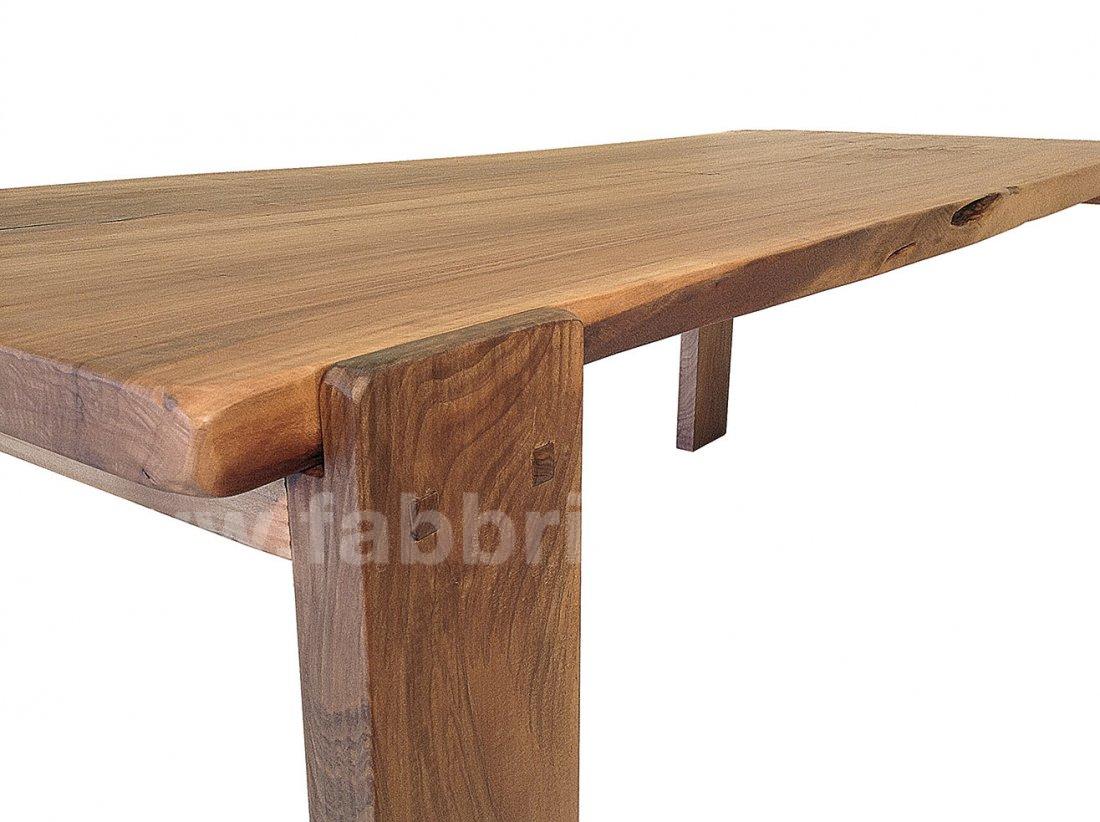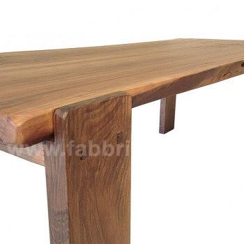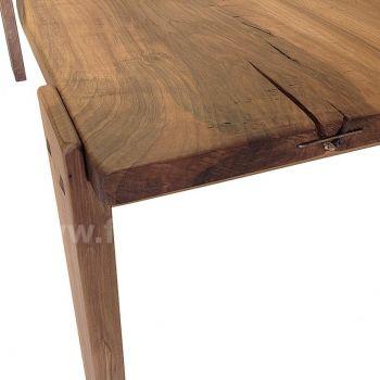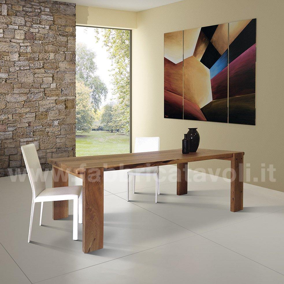 Tavolo rettangolare con piano fisso realizzato completamente in legno massello di rovere o noce trattato al naturale disponibile in più misure e realizzabile su misura. Il tavolo presenta crepe ed è piallato e spazzolato.