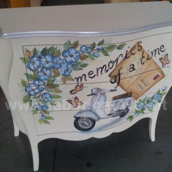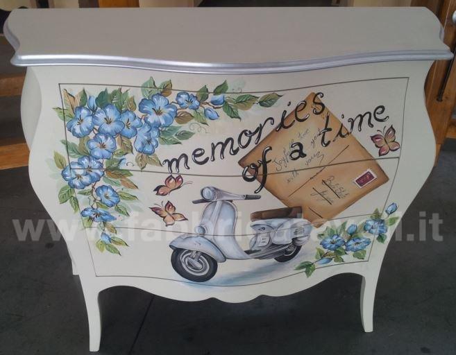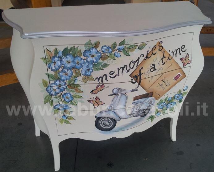 I mobili decorati sono interamente dipinti a mano uno alla volta.