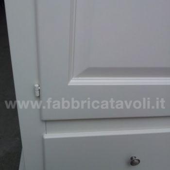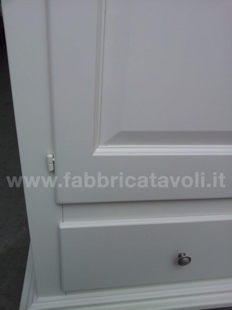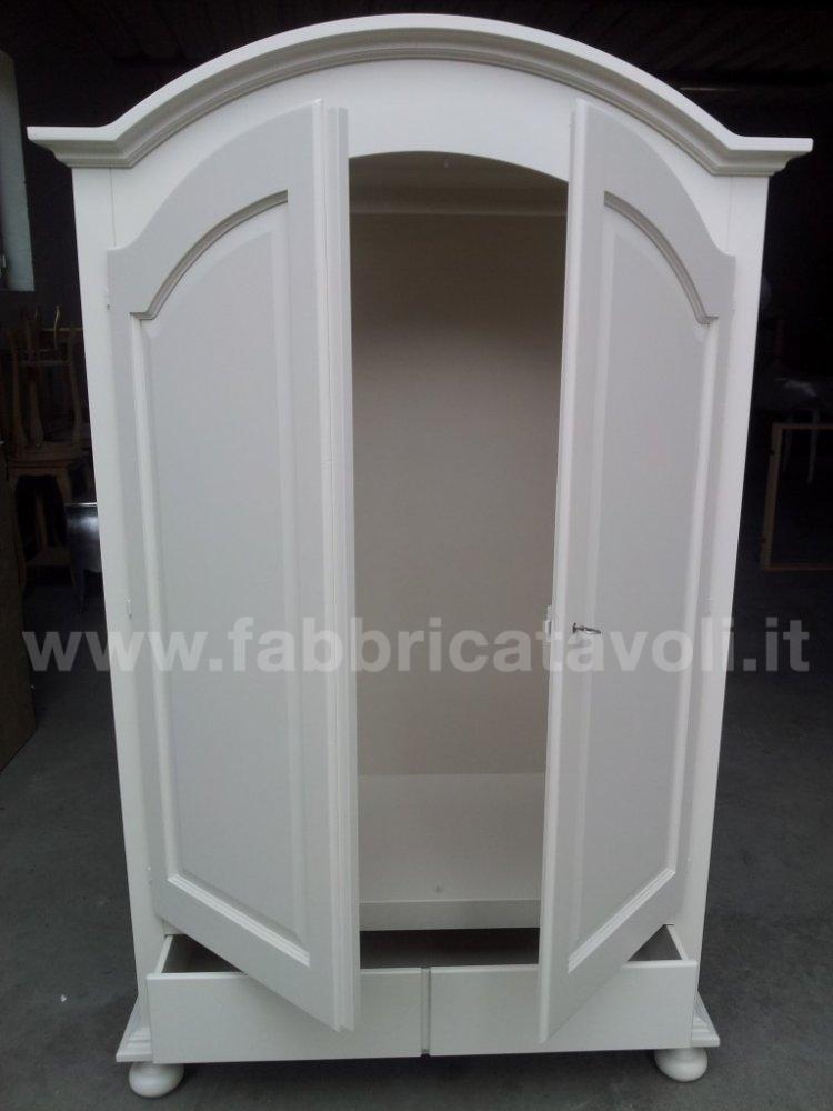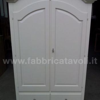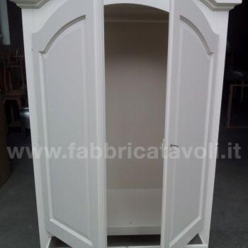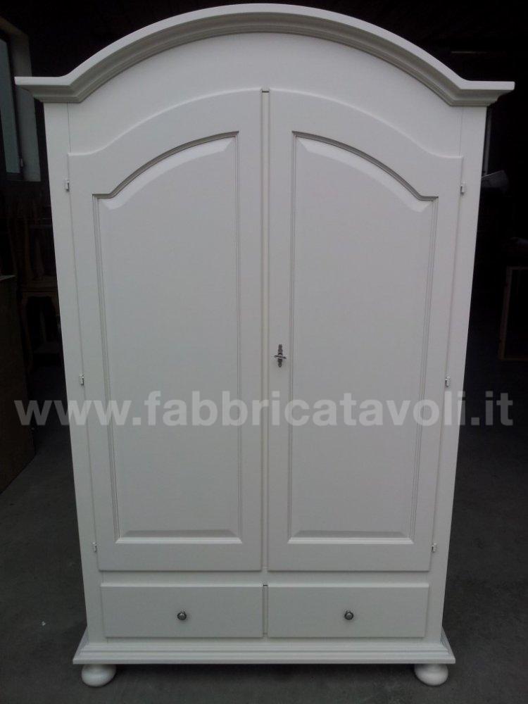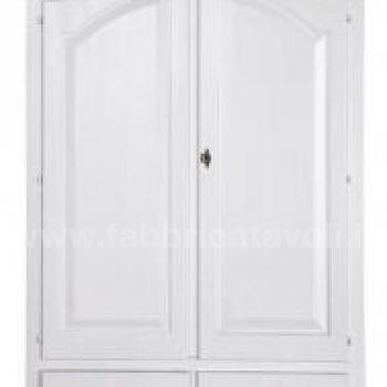 Armadio con 2 porte e 1 cassetto con cappello curvato a gendarme, finitura laccato bianco opaco.