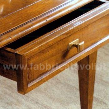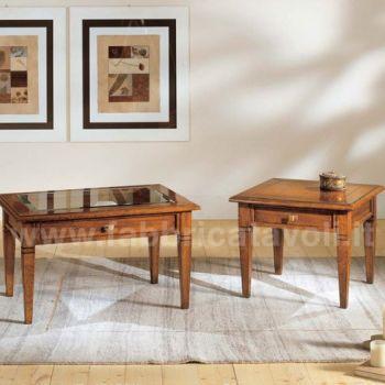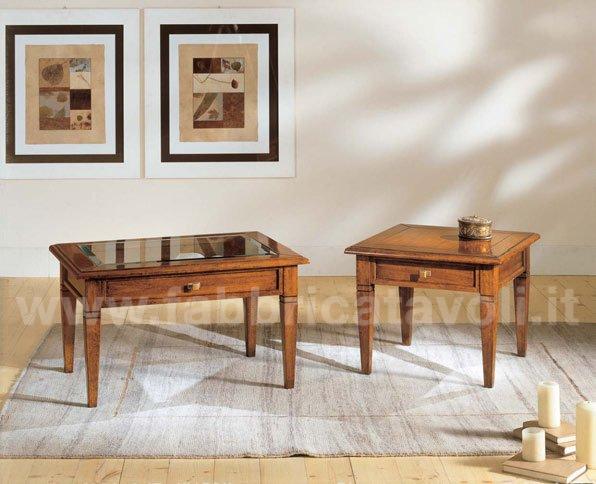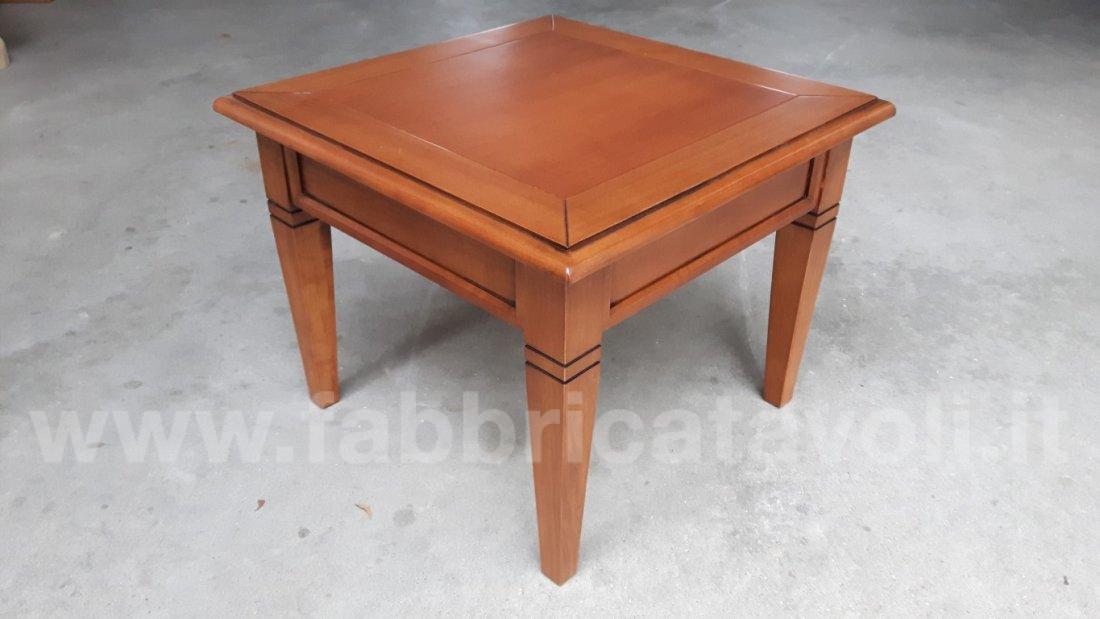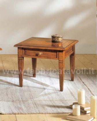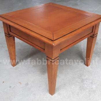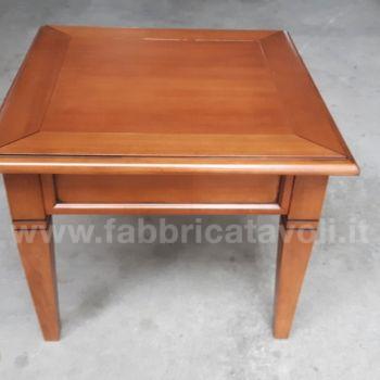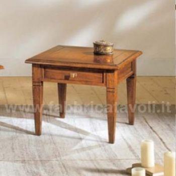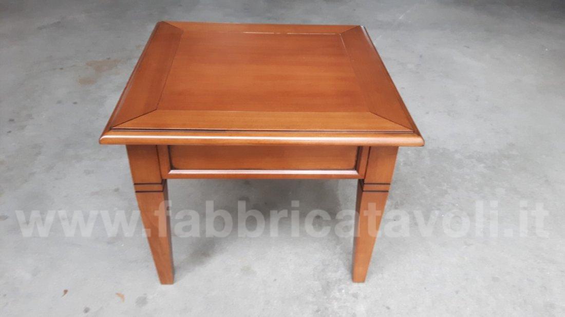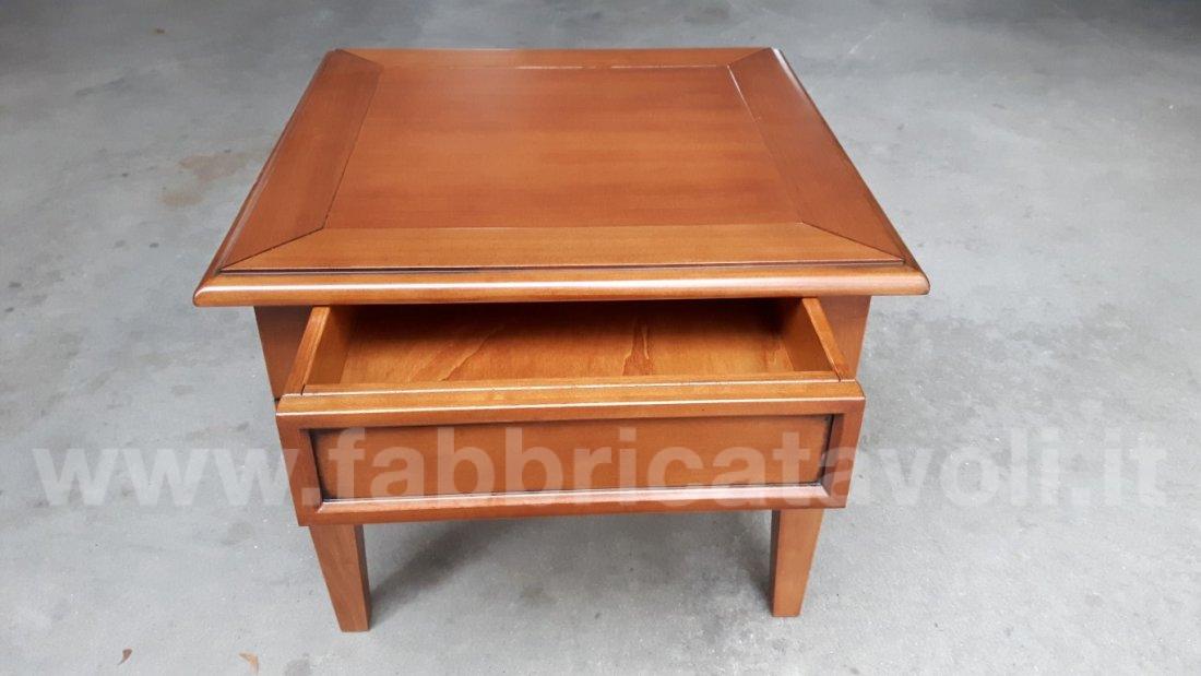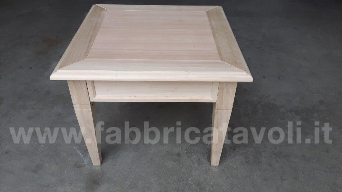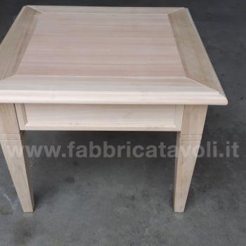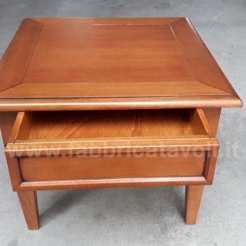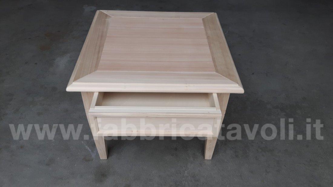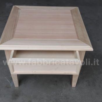 Tavolino quadrato massello con un cassetto. Piano a telaio con inserito un pannello in legno