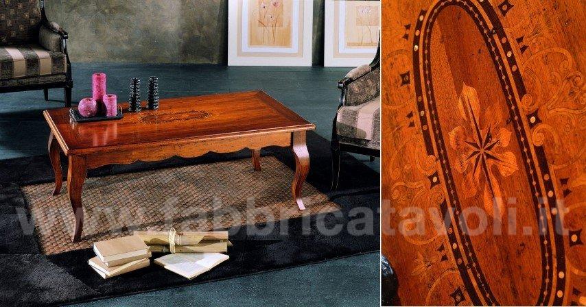 Tavolino rettangolare intarsio legno 130x70