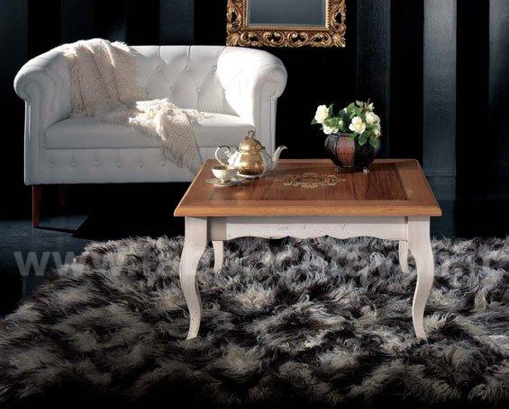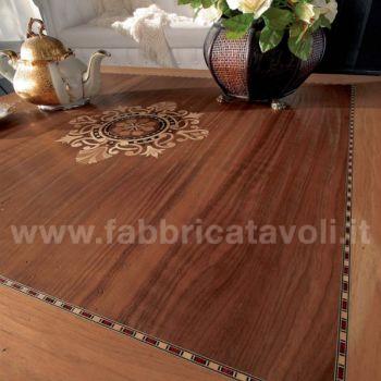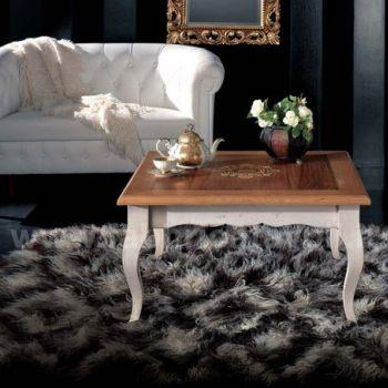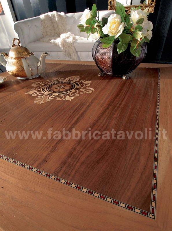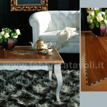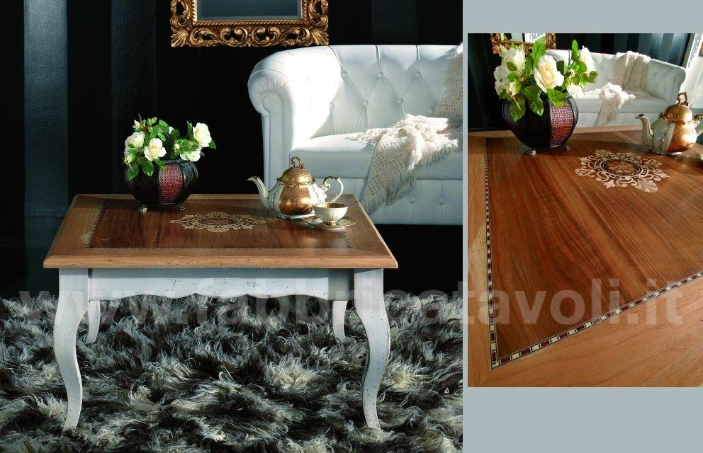 Tavolino 700 con intarsio margherita e gambe smontabili.