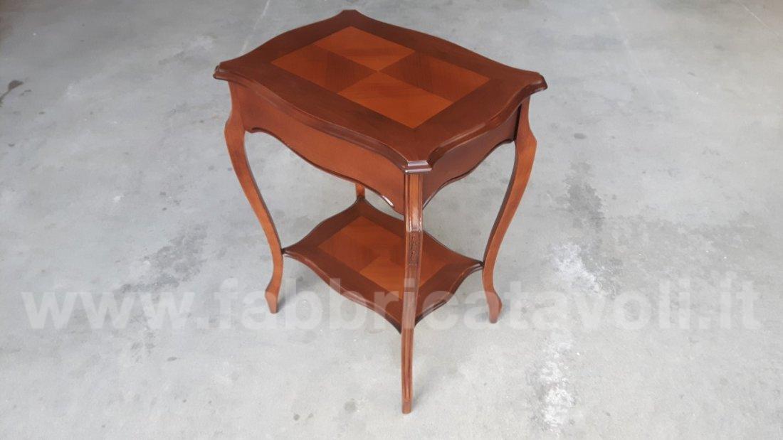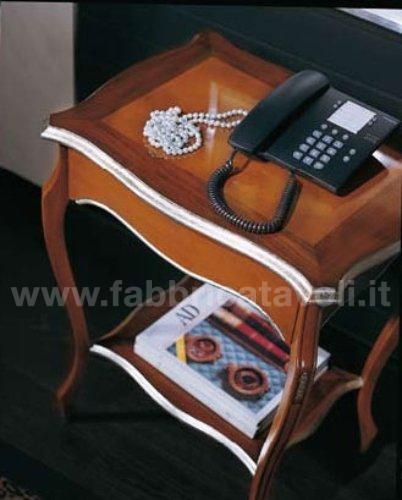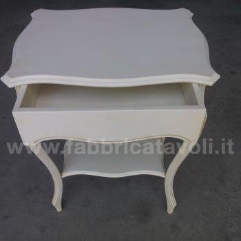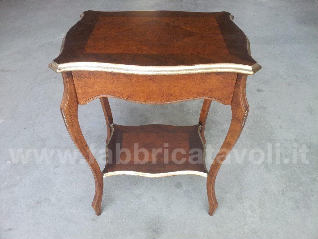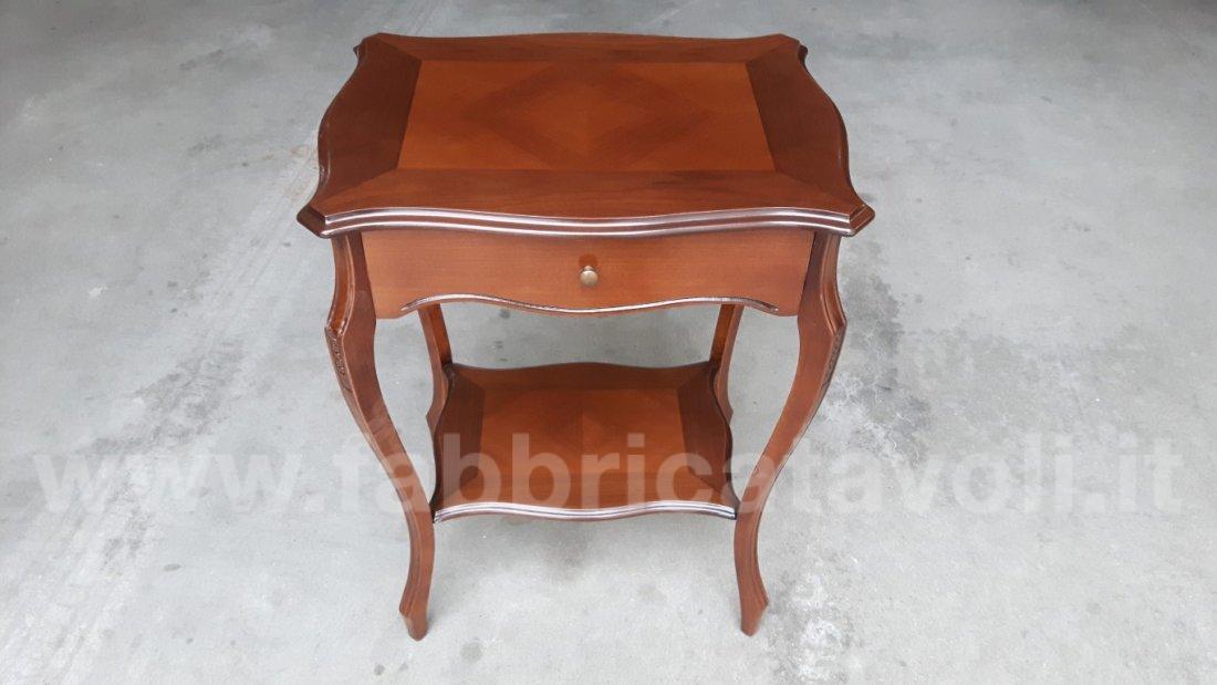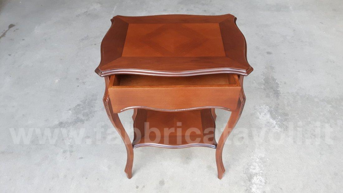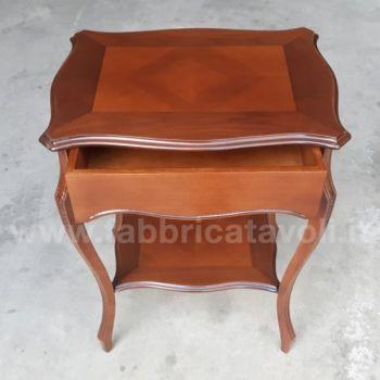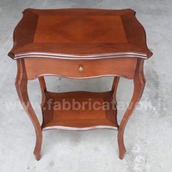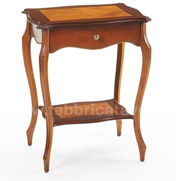 Raffinato tavolino con cassetto frontale e gambe sagomate, intagliate.