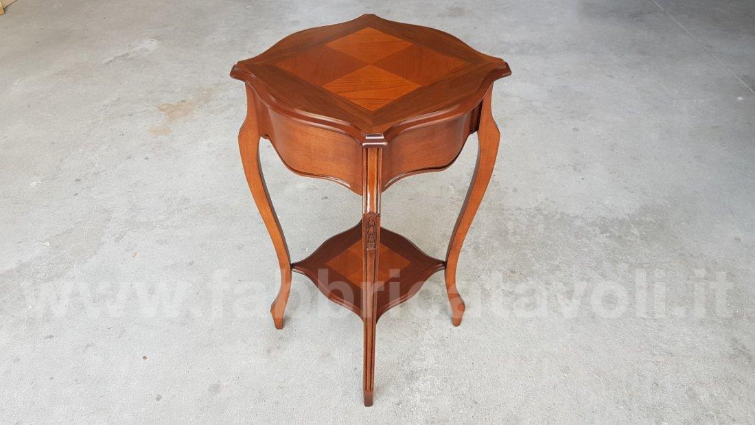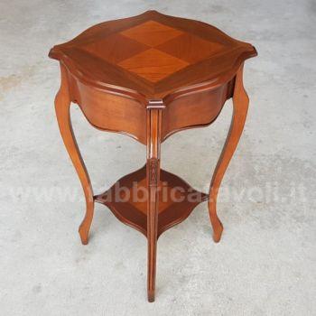 Raffinato tavolino con cassetto frontale e gambe sagomate, intagliate.