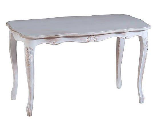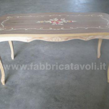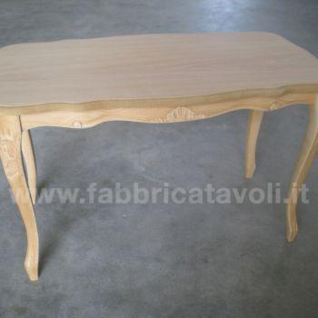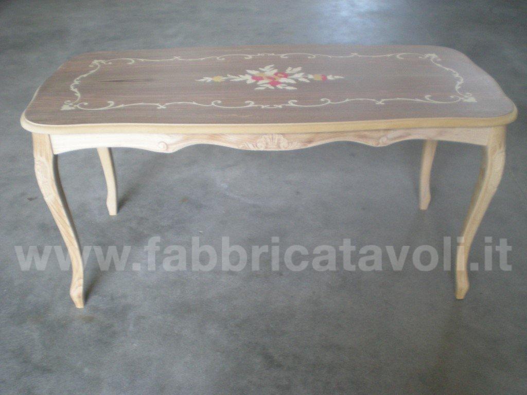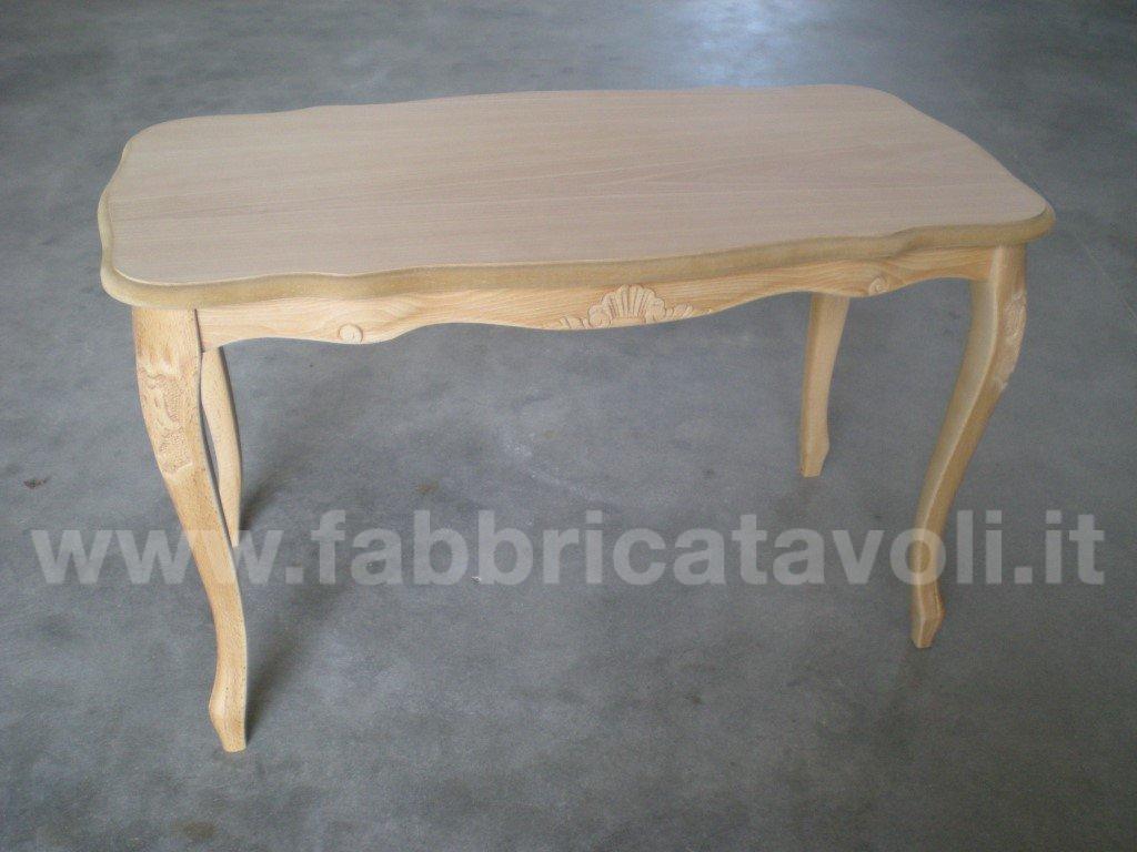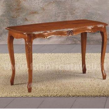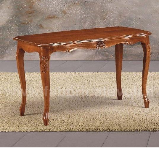 Tavolino rettangolare stile 700 in legno, con gambe intagliate e piano sagomato