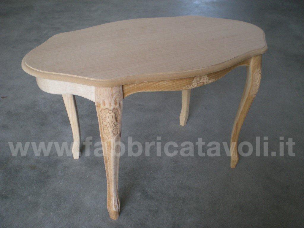Tavolino ovale stile 700 in legno, con gambe intagliate e piano sagomato.