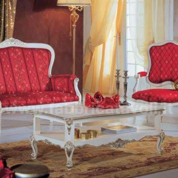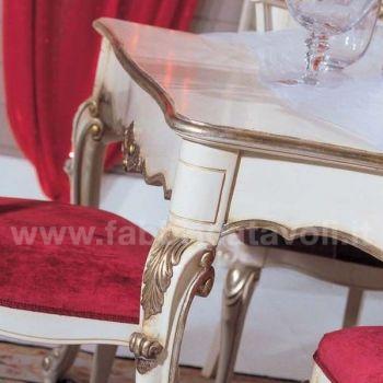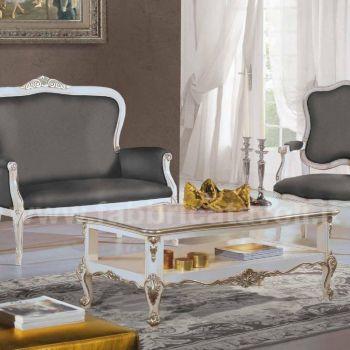 Tavolino 700 rettangolare intagliato. Le gambe anteriori e facciate laterali sono impreziosite da intagli realizzati a mano e con finitura in foglia argento o oro.