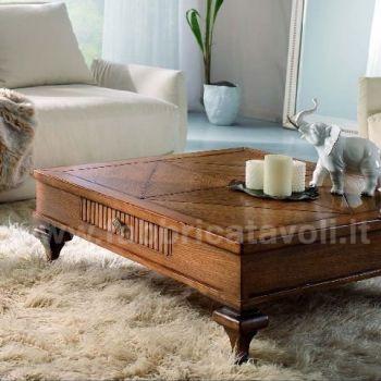 Tavolino realizzato con piano in rovere, è un mobile classico nella qualità della costruzione ma contemporaneo nell'immagine. I puntali in ottone sono disponibili a richiesta.