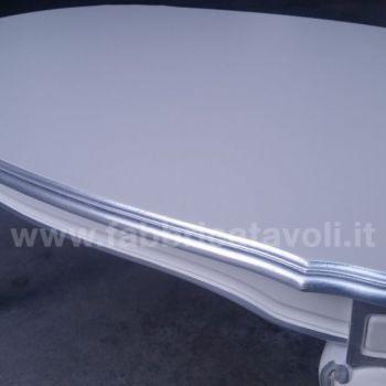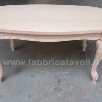 Elegante tavolino ovale 116x65 oppure 100x57 realizzato artigianalmente con piano in legno. Dispone di gambe smontabili in vero massello di faggio lavorato a mano.