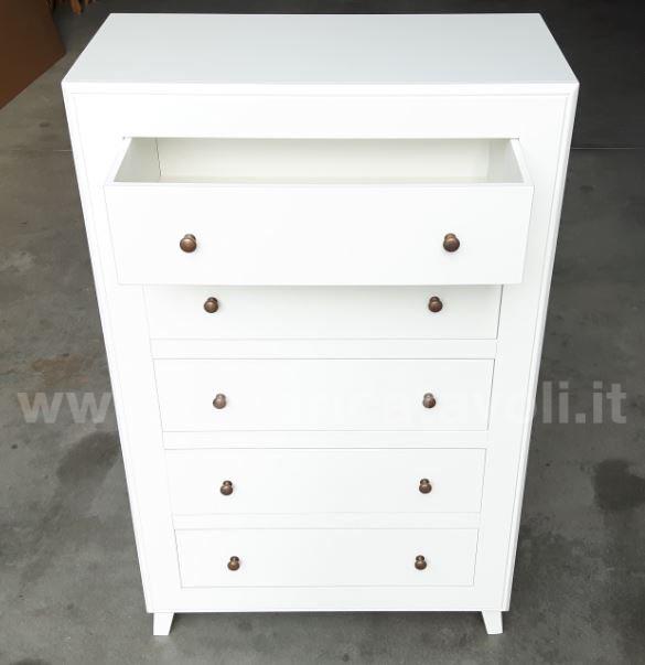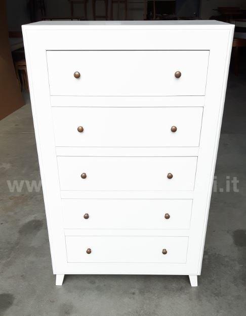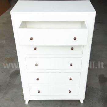 Cassettiera in legno con cinque cassetti, questo mobile può essere inserito in arredamenti di stile classico e arredamenti in stile moderno.