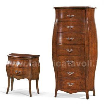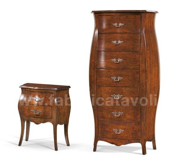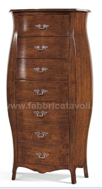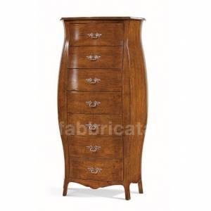 Cassettiera settimanale, bombata con sette cassetti, realizzata in legno massello oppure in legno multistrati.