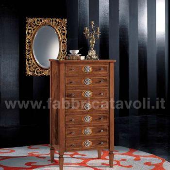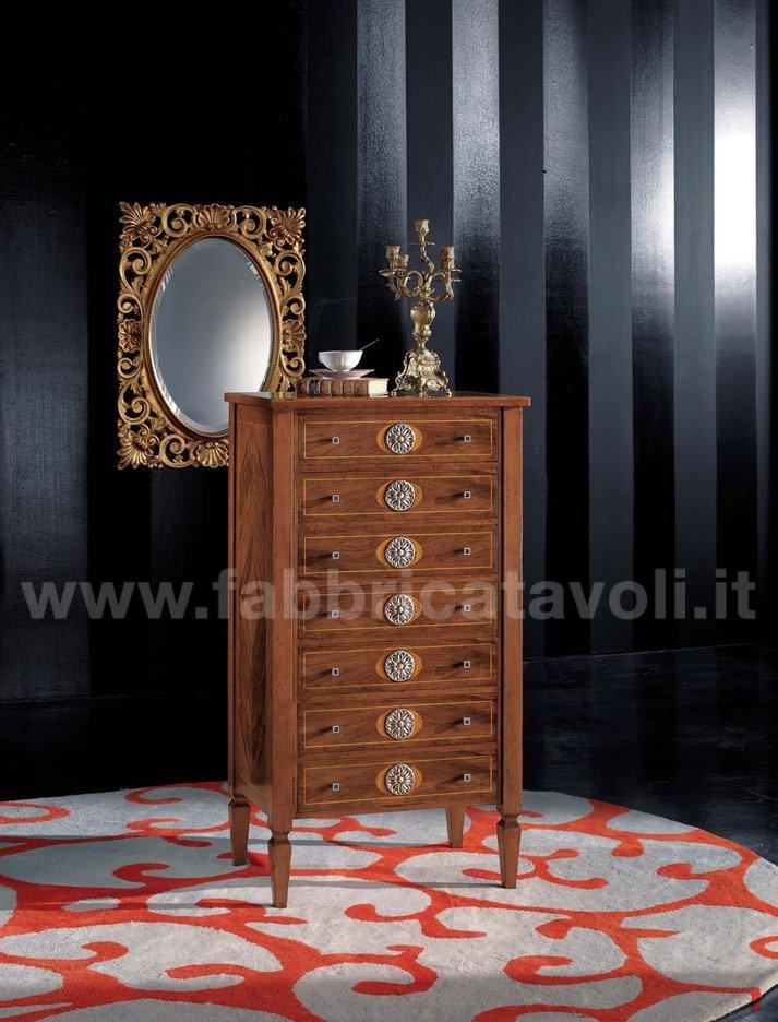 Cassettiera in legno sette cassetti con intarsio noce.