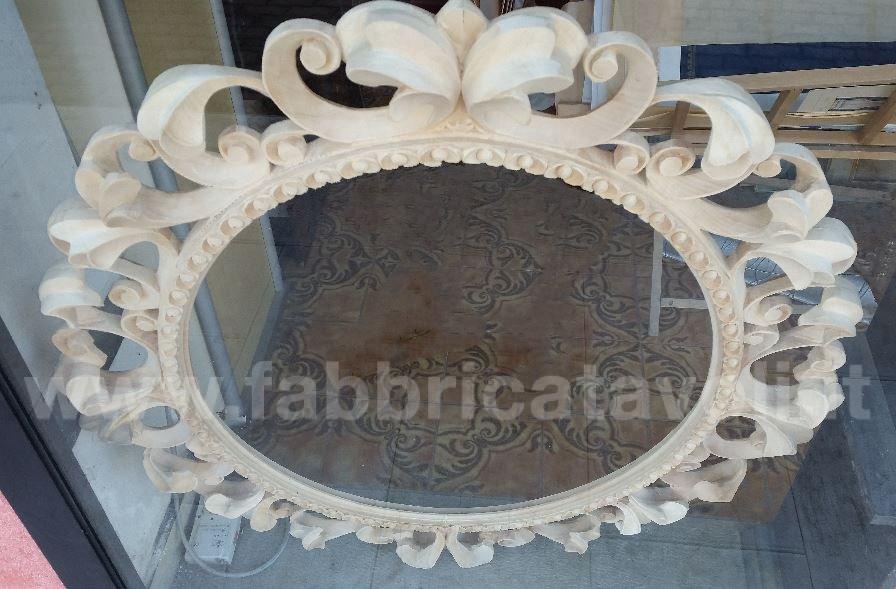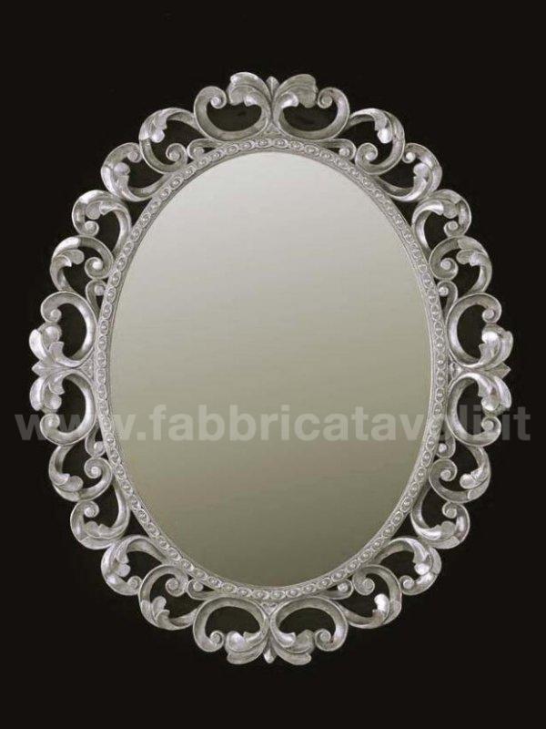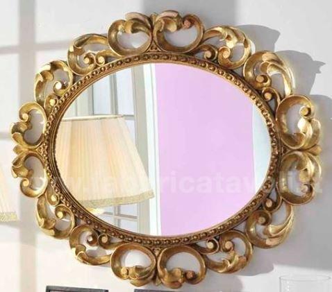 Specchiera ovale in legno, riccamente lavorata, completa di specchio molato.