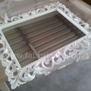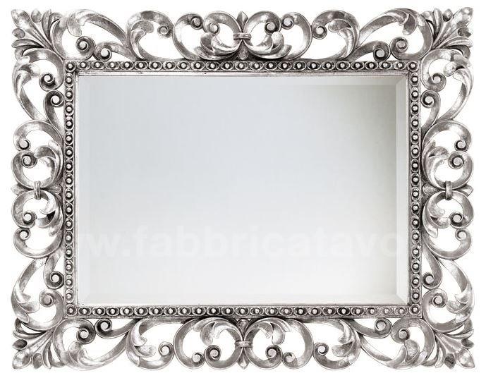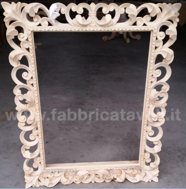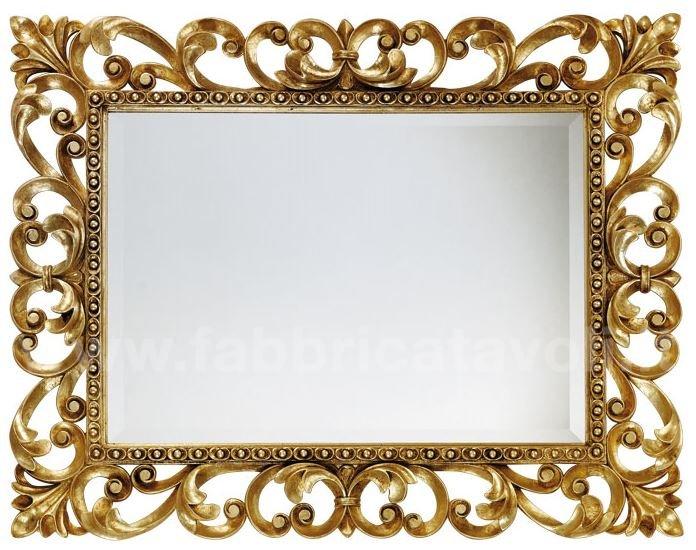 Specchiera rettangolare in legno, riccamente lavorata a mano, completa di specchio molato.