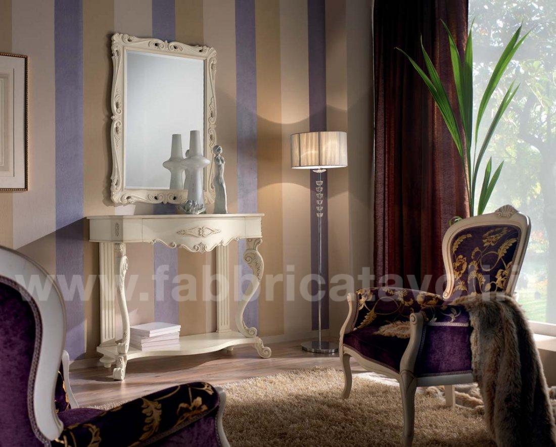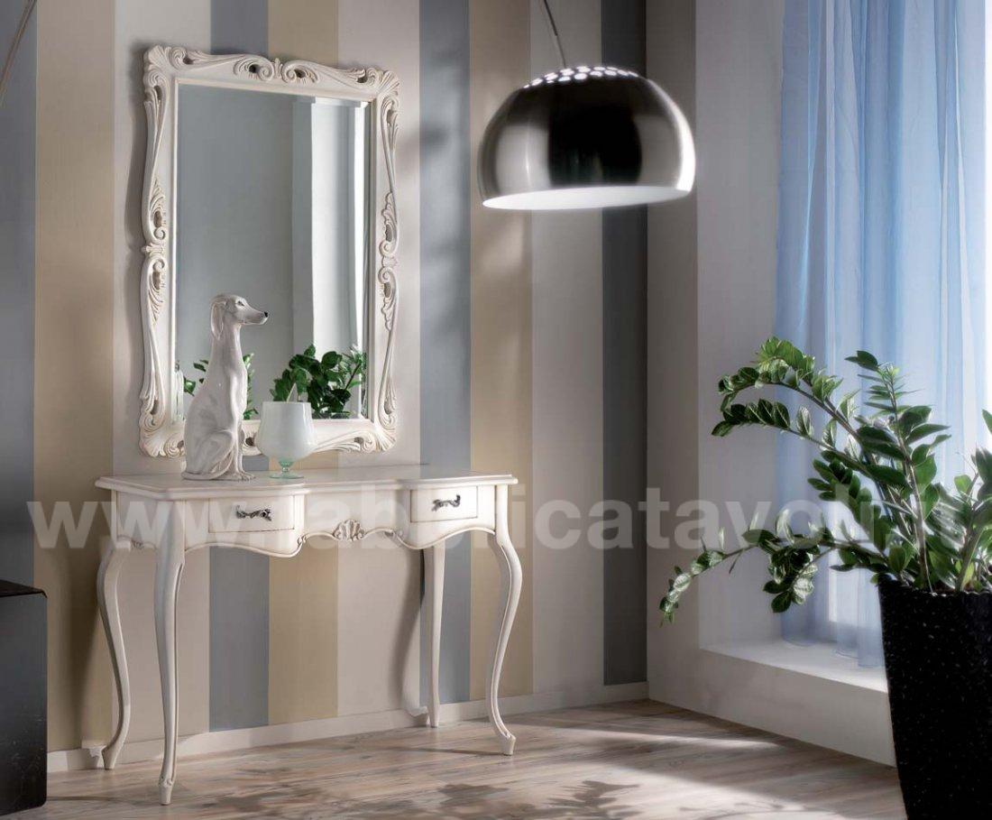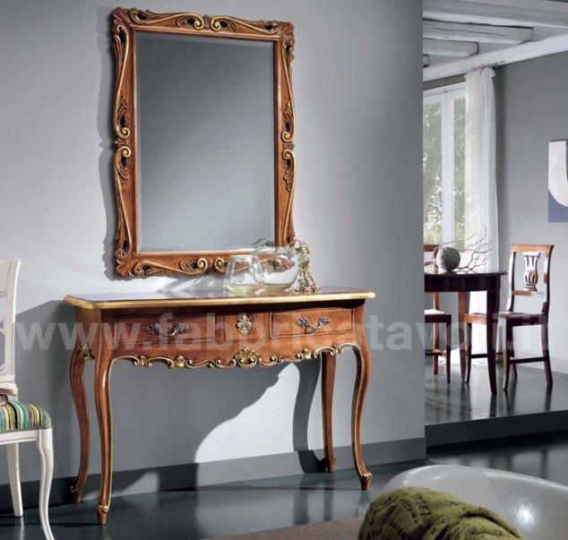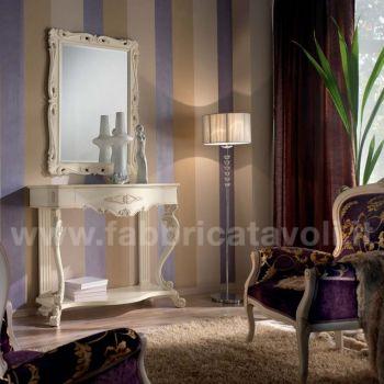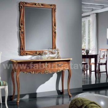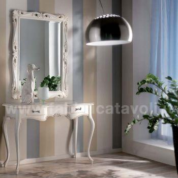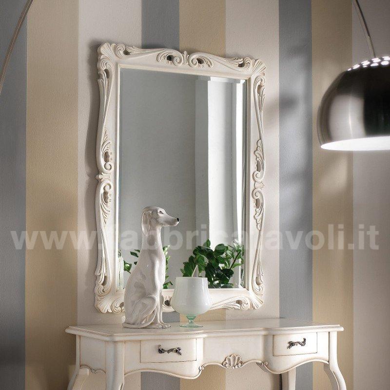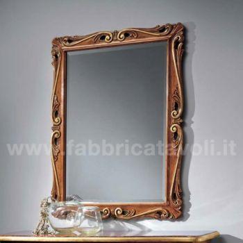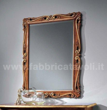 Specchiera rettangolare in legno, riccamente lavorata, completa di specchio molato.