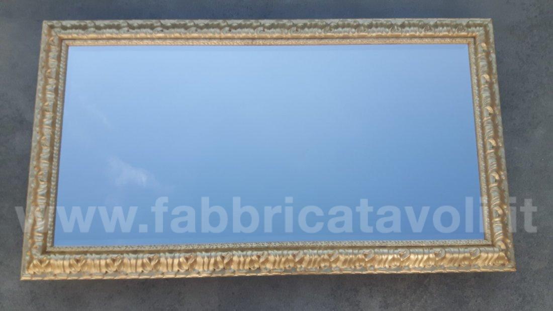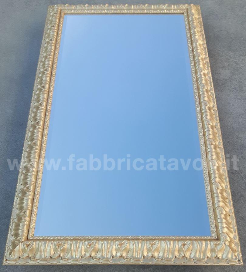 Specchiera rettangolare riccamente lavorata, completa di specchio molato e posizionabile sia verticalmente sia orizzontalmente.