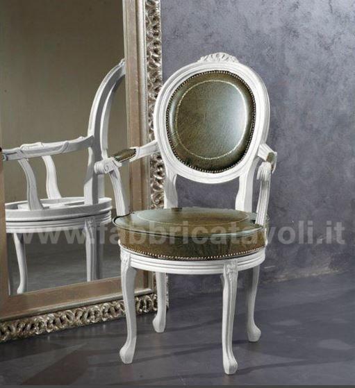 Poltrona girevole in faggio con fondino e schienale rivestita in pelle. La seduta è girevolea 360gradi.