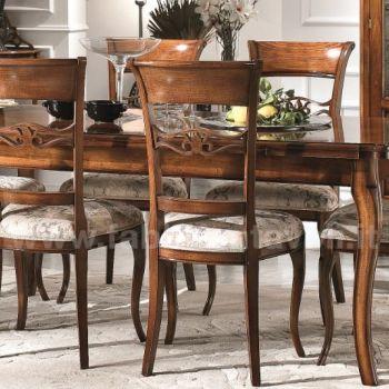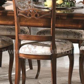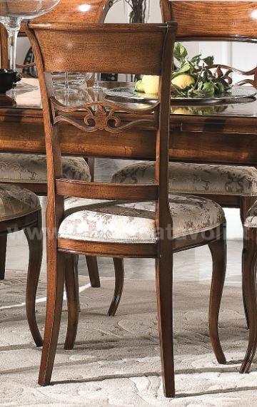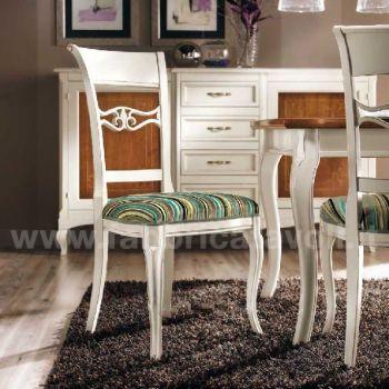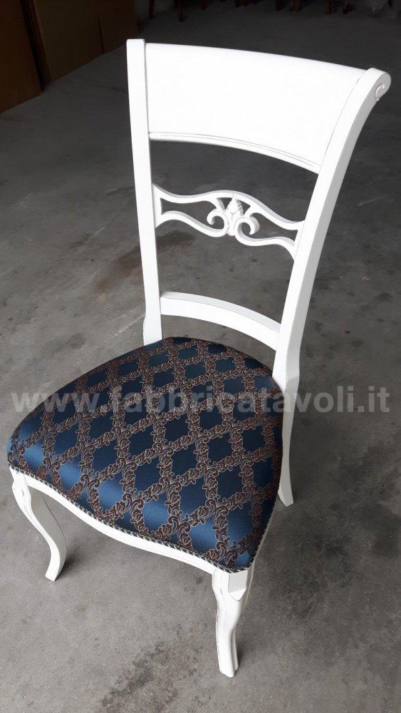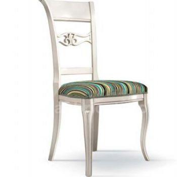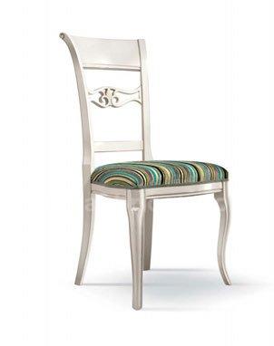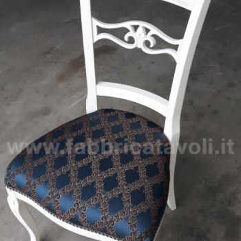 Sedia in faggio con seduta imbottita. Le gambe anteriori sono sagomate.