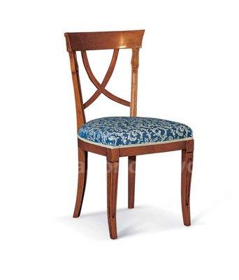 Sedia in faggio, con gamba anteriore e montanti schienale lavorati a bassofondo, disponibile con seduta imbottita