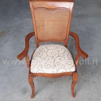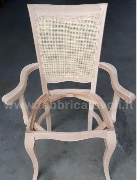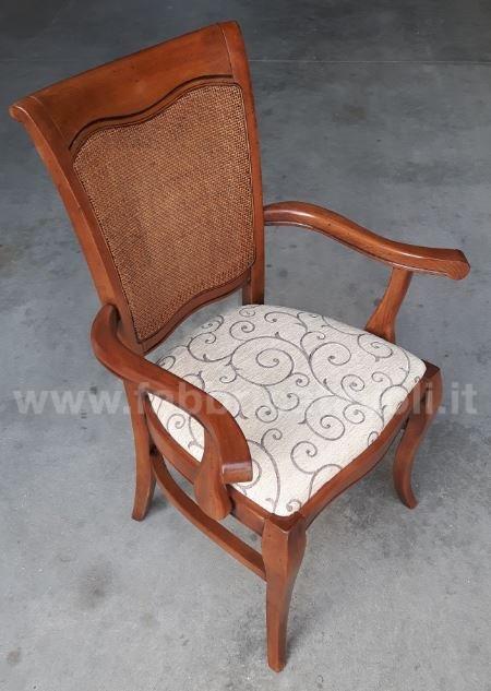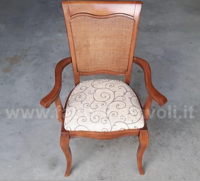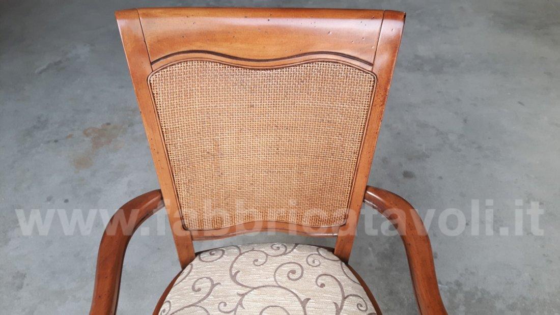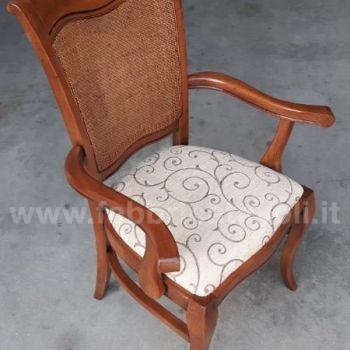 Sedia capotavola realizzata in legno massello di faggio, con schienale in paglia di Vienna e seduta imbottita oppure con schienale e seduta imbottita.