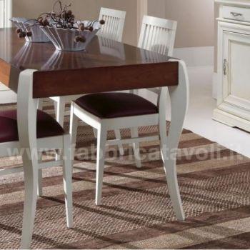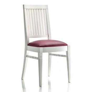 Sedia in faggio, con seduta imbottita in tessuto oppure ecopelle.