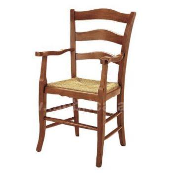 Sedia con braccioli in legno di faggio o frassino, con seduta a scelta tra paglia palustre, legno oppure imbottita.