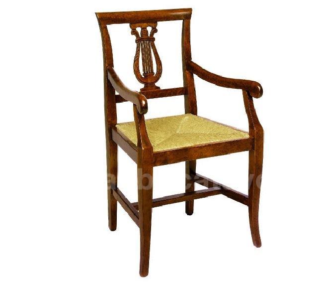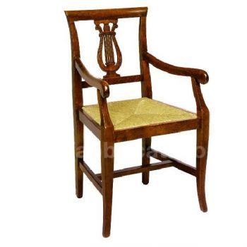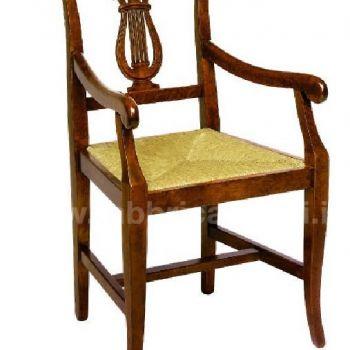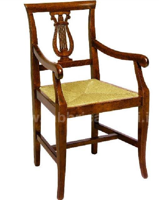 Sedia con braccioli in legno di faggio con seduta a scelta tra paglia palustre, imbottita, legno massello oppure vienna.