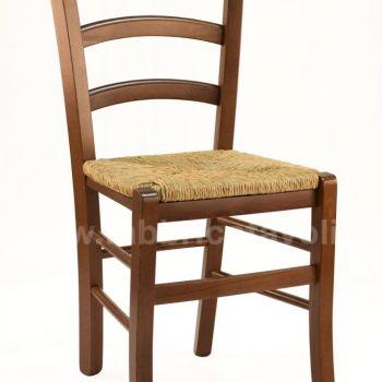 Sedia in faggio con seduta in paglia rustica e finitura noce classico standard.