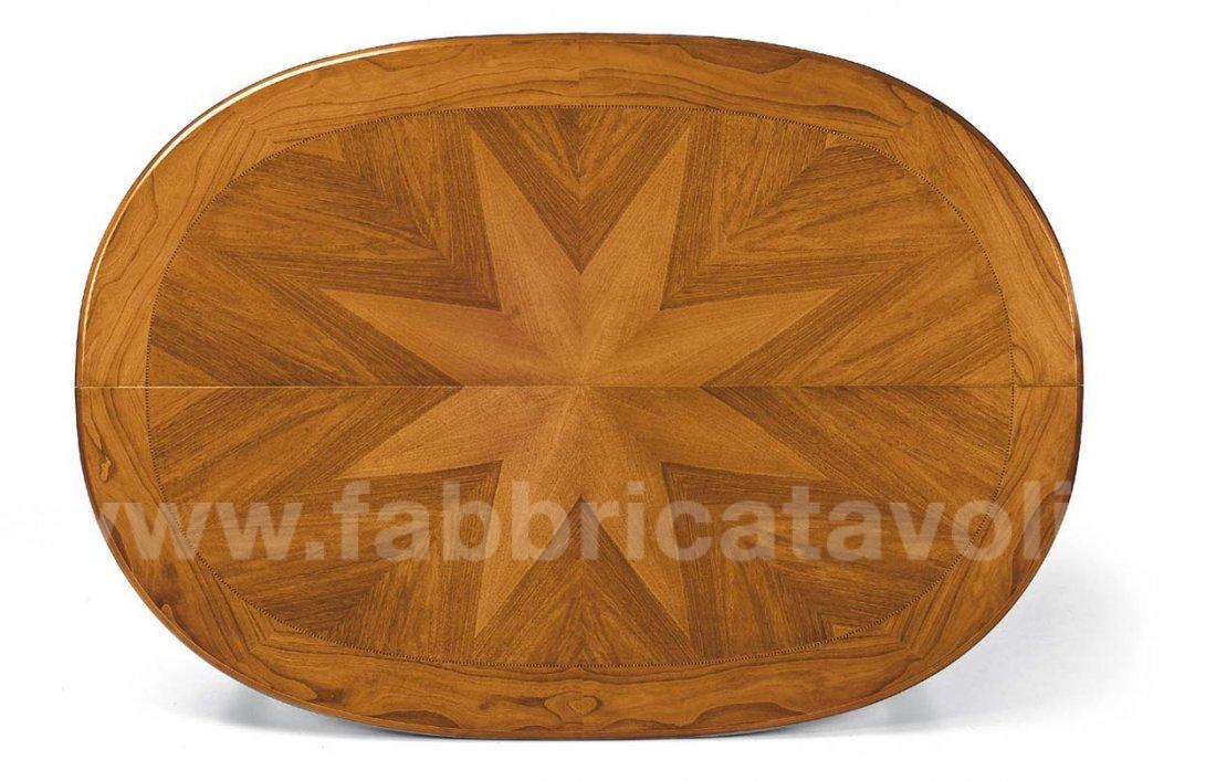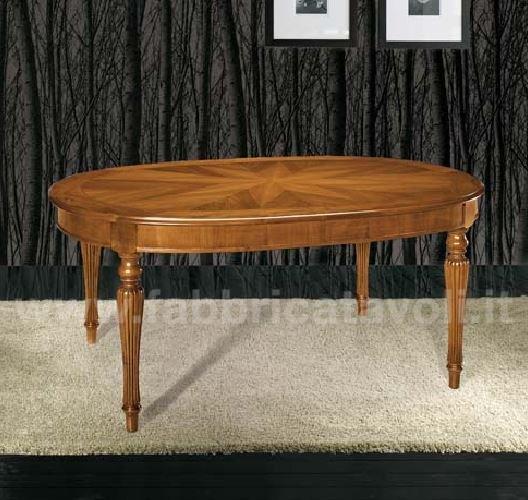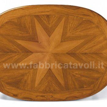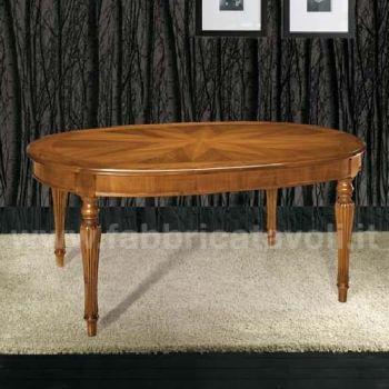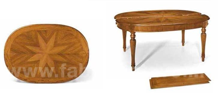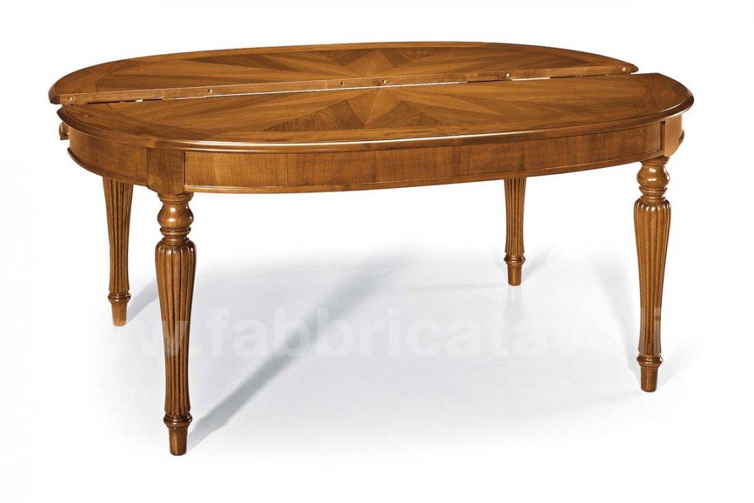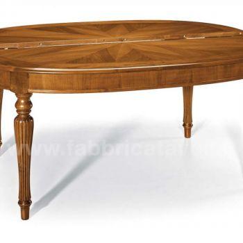 Tavolo ovale allungabile in noce con apertura al centro, dotato di 2 allunghe da cm 50.