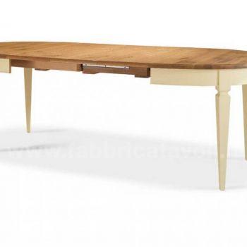 Tavolo ovale allungabile in rovere con apertura al centro, dotato di 3 allunghe da cm 35 (per il 130x105), e 3 allunghe da 40 (per il 150x110 e 170x110).